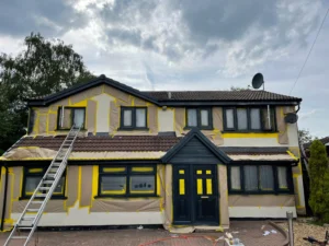 When a uPVC spraying job is about to start at Oldham Spray our main priority is ensuring the house is protected from any over spray this is kept in our mind all day to ensure the job is as clean and professional as possible: