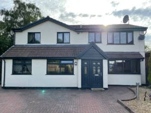 This home in Bolton was another rendered building. They also had very old dated white windows and had a black composite front door. This amazing transformation through our uPVC spraying also offered some elegant style when transformed into our most popular colour 6 years running, anthracite grey. Anthracite grey offer a dark dusky grey with dark blue undertones, we find this works exceptionally well on most houses making it the one of the most diverse colours we have to offer